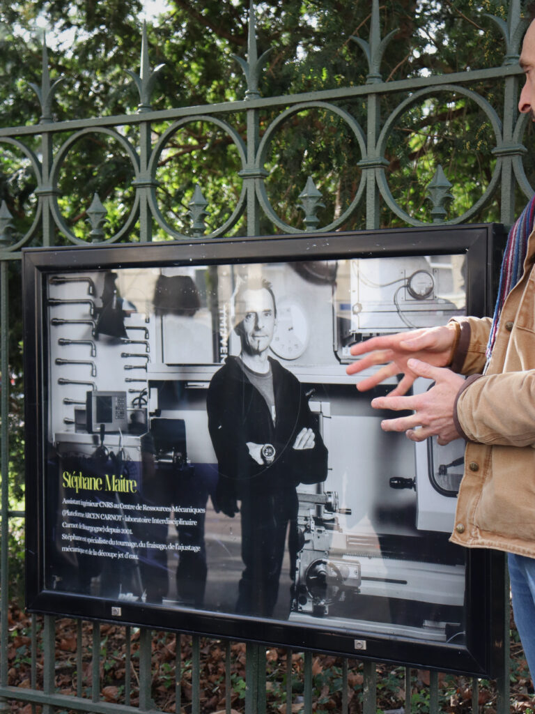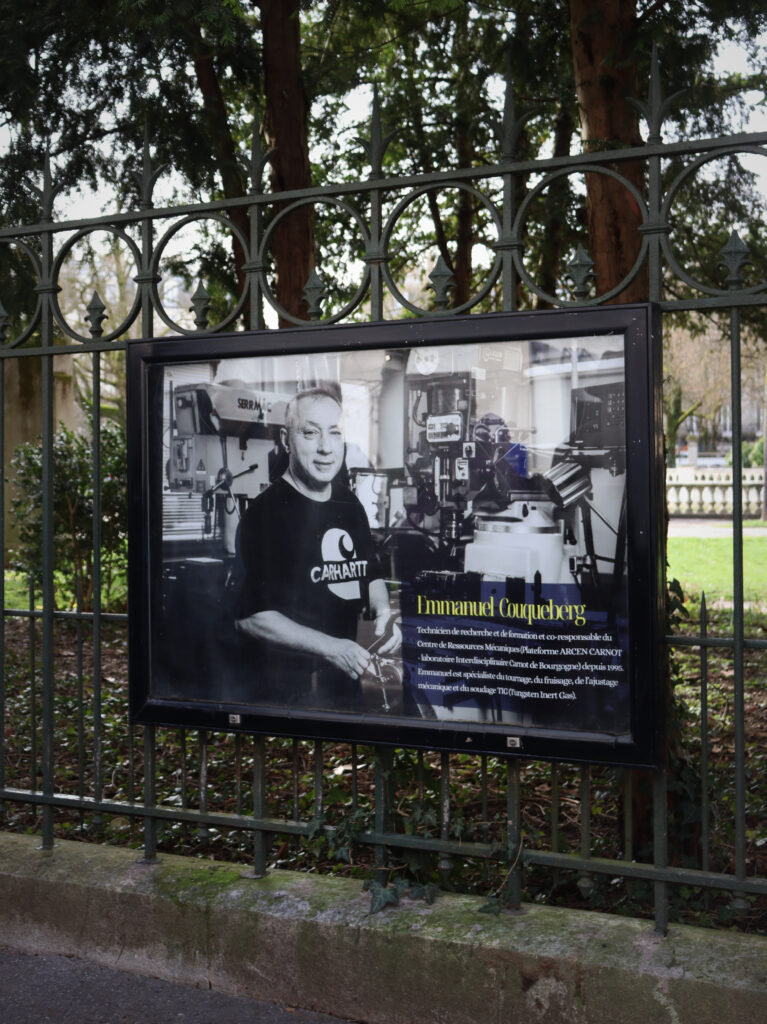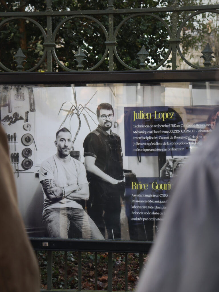 Cette exposition revêt une signification particulière pour le Laboratoire ICB, et plus spécifiquement pour son Centre de Ressources Mécaniques (CRM), intégré à la plateforme ARCEN-Carnot. Les collègues des ateliers, techniciens et ingénieurs CNRS, assistants ingénieurs et techniciens de recherche et de formation de l’Université Bourgogne Europe, y sont mis à l’honneur à travers leur quotidien professionnel.